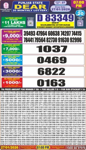Dear Monthly Chart Punjab State Dear 20 Monthly 7PM Lottery Result 27.01.26