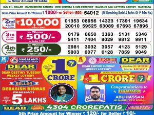Dear Lottery Monthly Chart 6PM Result Sikkim State 04.12.25