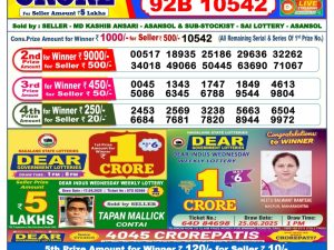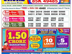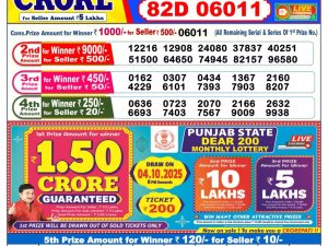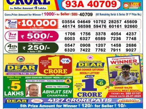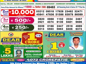 Dear Lottery Monthly Chart 6PM Result Sikkim State 06.11.25