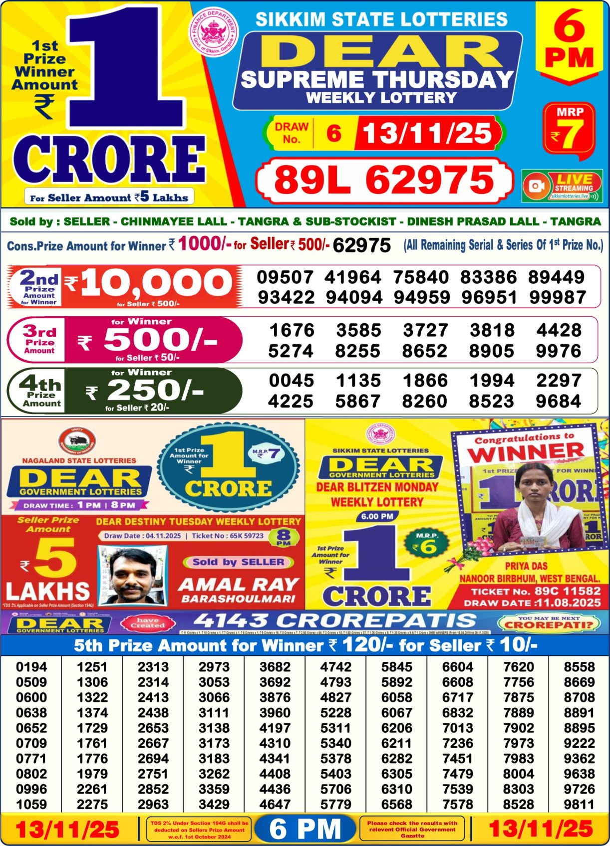 Dear Lottery Monthly Chart 6PM Result Sikkim State 13.11.25 November 13, 2025 Leave a Comment on Dear Lottery Monthly Chart 6PM Result Sikkim State 13.11.25 Share: XFacebookPinterestRedditVKDiggLinkedinMix