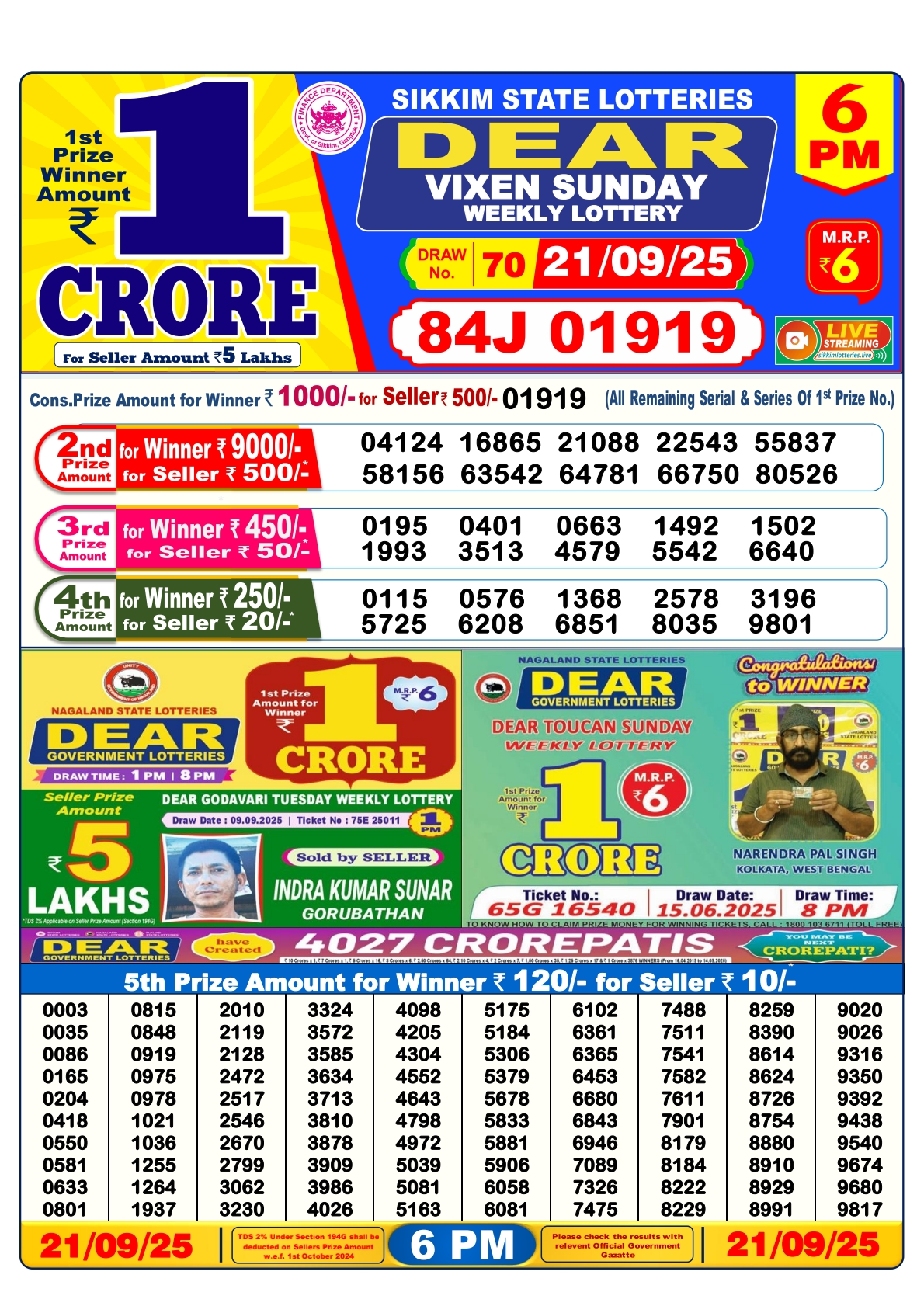 Dear Monthly Chart 6PM Lottery Result 21.09.25