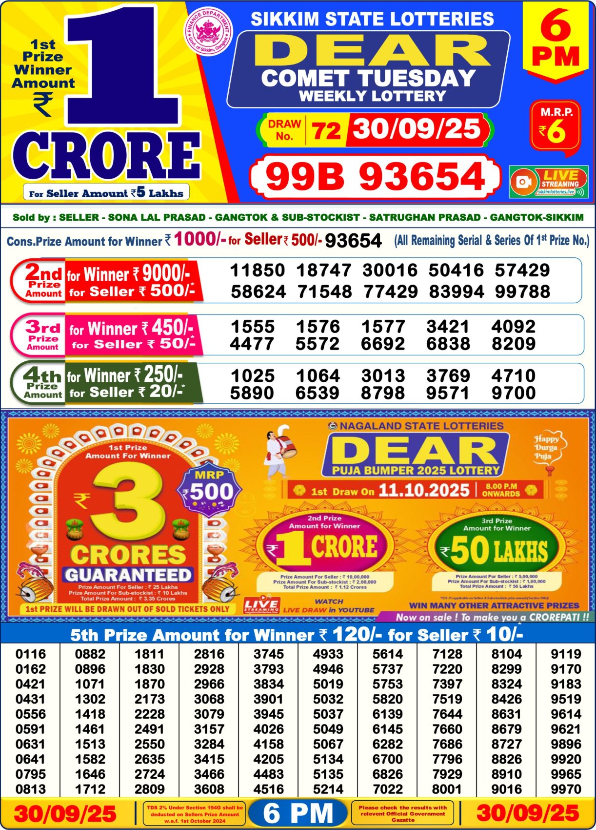 Dear Monthly Chart 6PM Lottery Result 30.09.25 September 30, 2025 Leave a Comment on Dear Monthly Chart 6PM Lottery Result 30.09.25 Share: XFacebookPinterestRedditVKDiggLinkedinMix