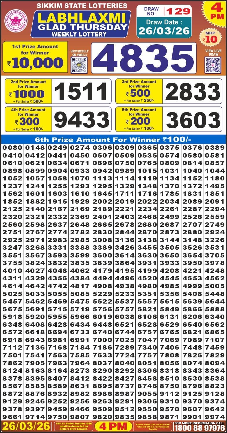 Dear Monthly Chart Labh Laxmi Lottery 4PM Result 26.03.26 March 26, 2026 Leave a Comment on Dear Monthly Chart Labh Laxmi Lottery 4PM Result 26.03.26 Share: XFacebookPinterestRedditVKDiggLinkedinMix