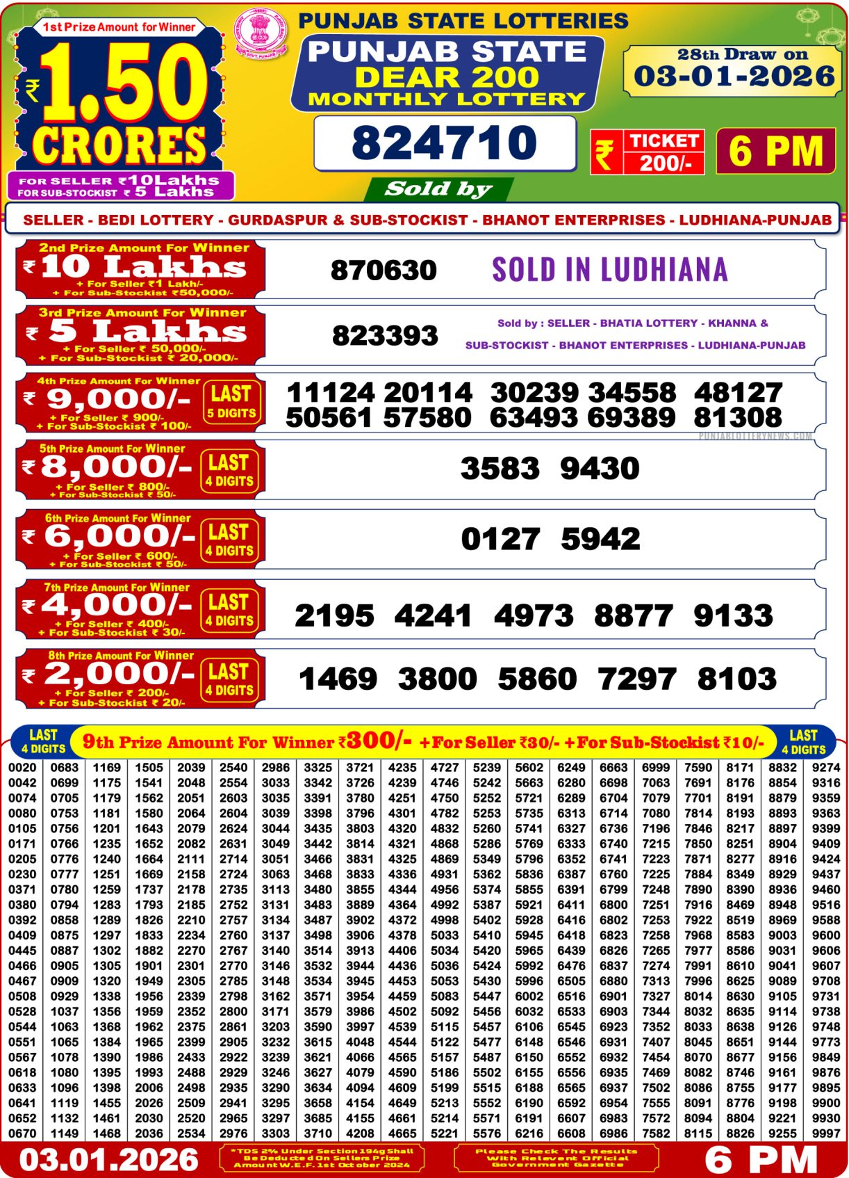 Dear Monthly Chart Punjab State Dear 200 Monthly 6PM Lottery Result 03.01.26 January 3, 2026 Leave a Comment on Dear Monthly Chart Punjab State Dear 200 Monthly 6PM Lottery Result 03.01.26 Share: XFacebookPinterestRedditVKDiggLinkedinMix