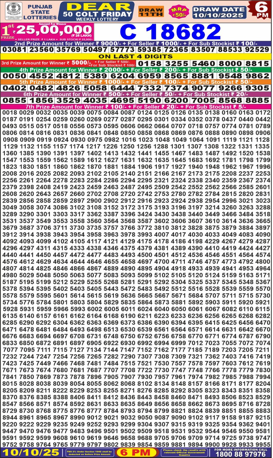 Dear Monthly Chart Punjab State Dear 50 6PM Lottery Result 10.10.25 October 10, 2025 Leave a Comment on Dear Monthly Chart Punjab State Dear 50 6PM Lottery Result 10.10.25 Share: XFacebookPinterestRedditVKDiggLinkedinMix