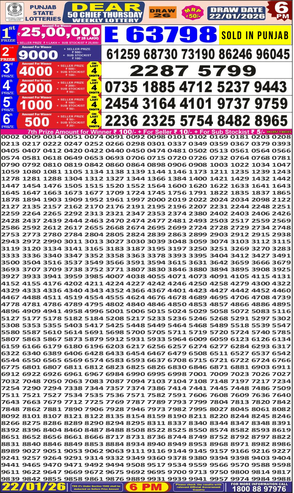 Dear Monthly Chart Punjab State Dear 50 6PM Lottery Result 22.01.26 January 22, 2026 Leave a Comment on Dear Monthly Chart Punjab State Dear 50 6PM Lottery Result 22.01.26 Share: XFacebookPinterestRedditVKDiggLinkedinMix