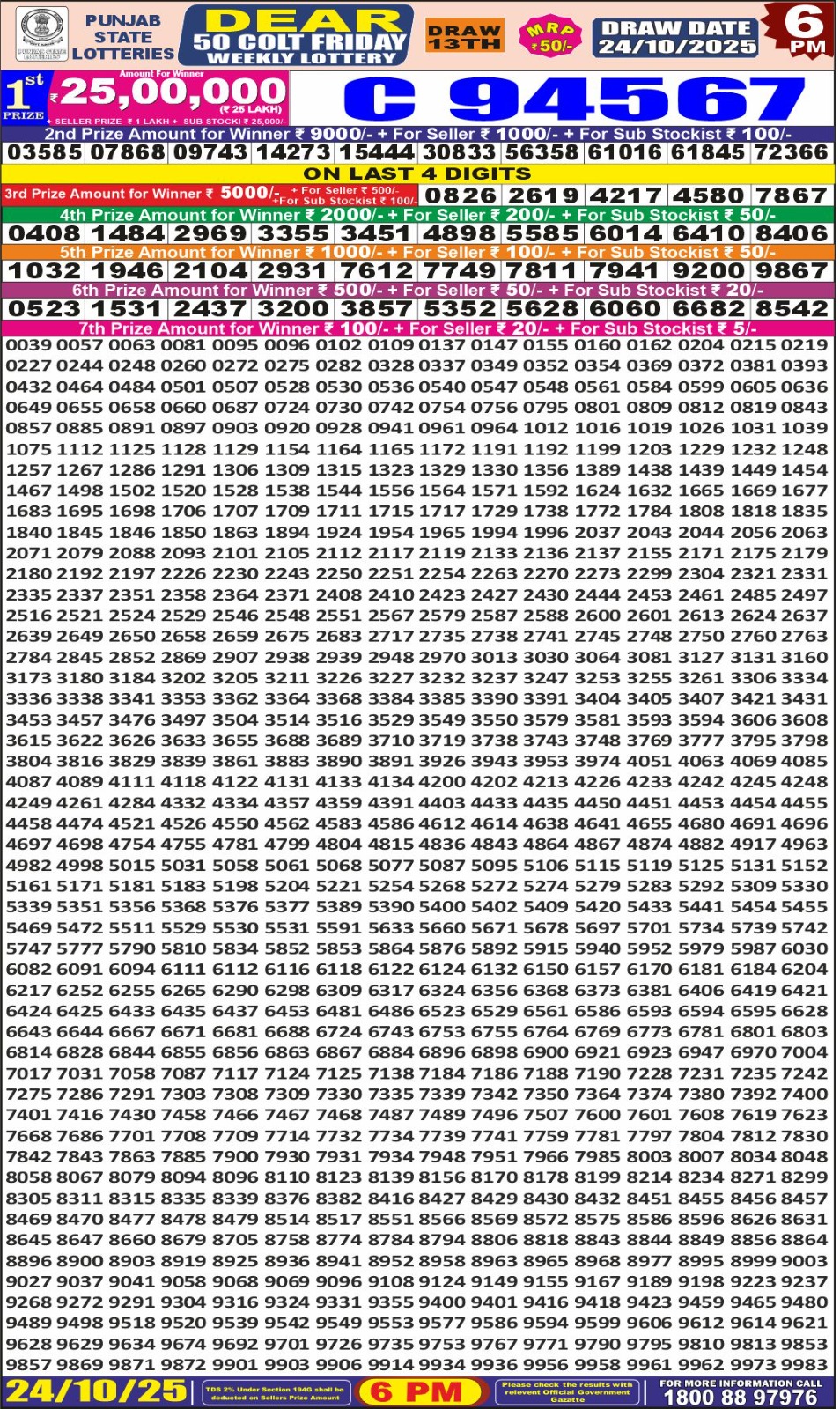 Dear Monthly Chart Punjab State Dear 50 6PM Lottery Result 24.10.25 October 24, 2025 Leave a Comment on Dear Monthly Chart Punjab State Dear 50 6PM Lottery Result 24.10.25 Share: XFacebookPinterestRedditVKDiggLinkedinMix
