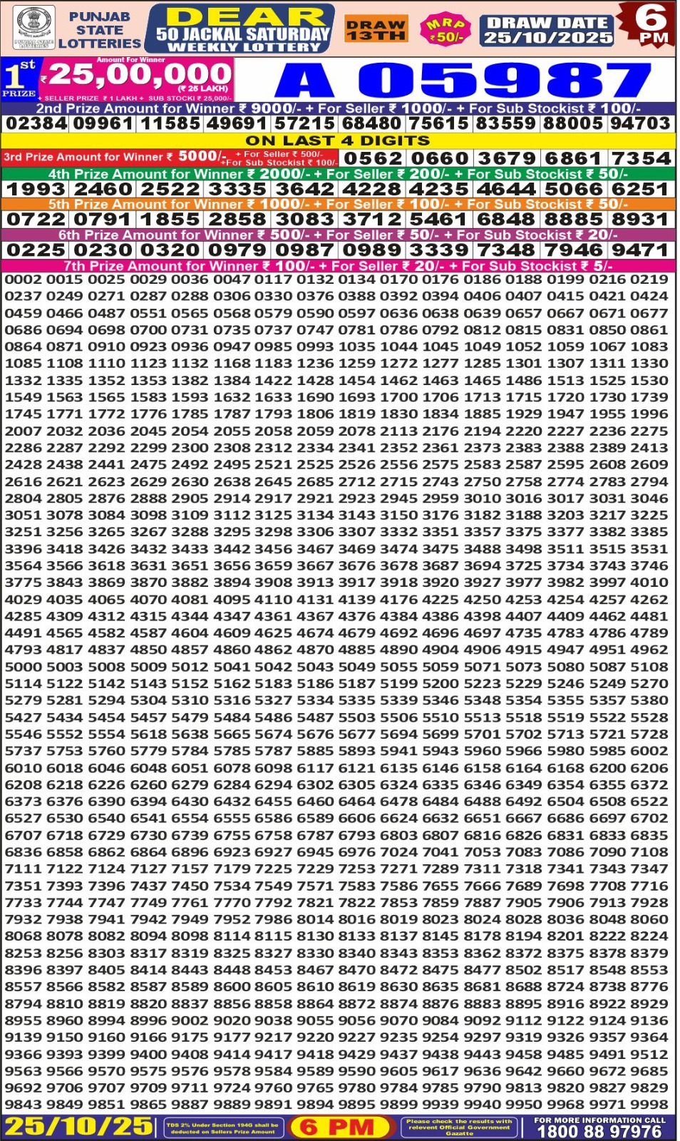 Dear Monthly Chart Punjab State Dear 50 6PM Lottery Result 25.10.25 October 25, 2025 Leave a Comment on Dear Monthly Chart Punjab State Dear 50 6PM Lottery Result 25.10.25 Share: XFacebookPinterestRedditVKDiggLinkedinMix
