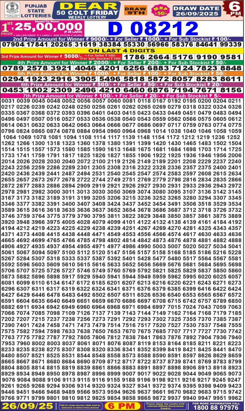 Dear Monthly Chart Punjab State Dear 50 6PM Lottery Result 26.09.25 September 26, 2025 Leave a Comment on Dear Monthly Chart Punjab State Dear 50 6PM Lottery Result 26.09.25 Share: XFacebookPinterestRedditVKDiggLinkedinMix