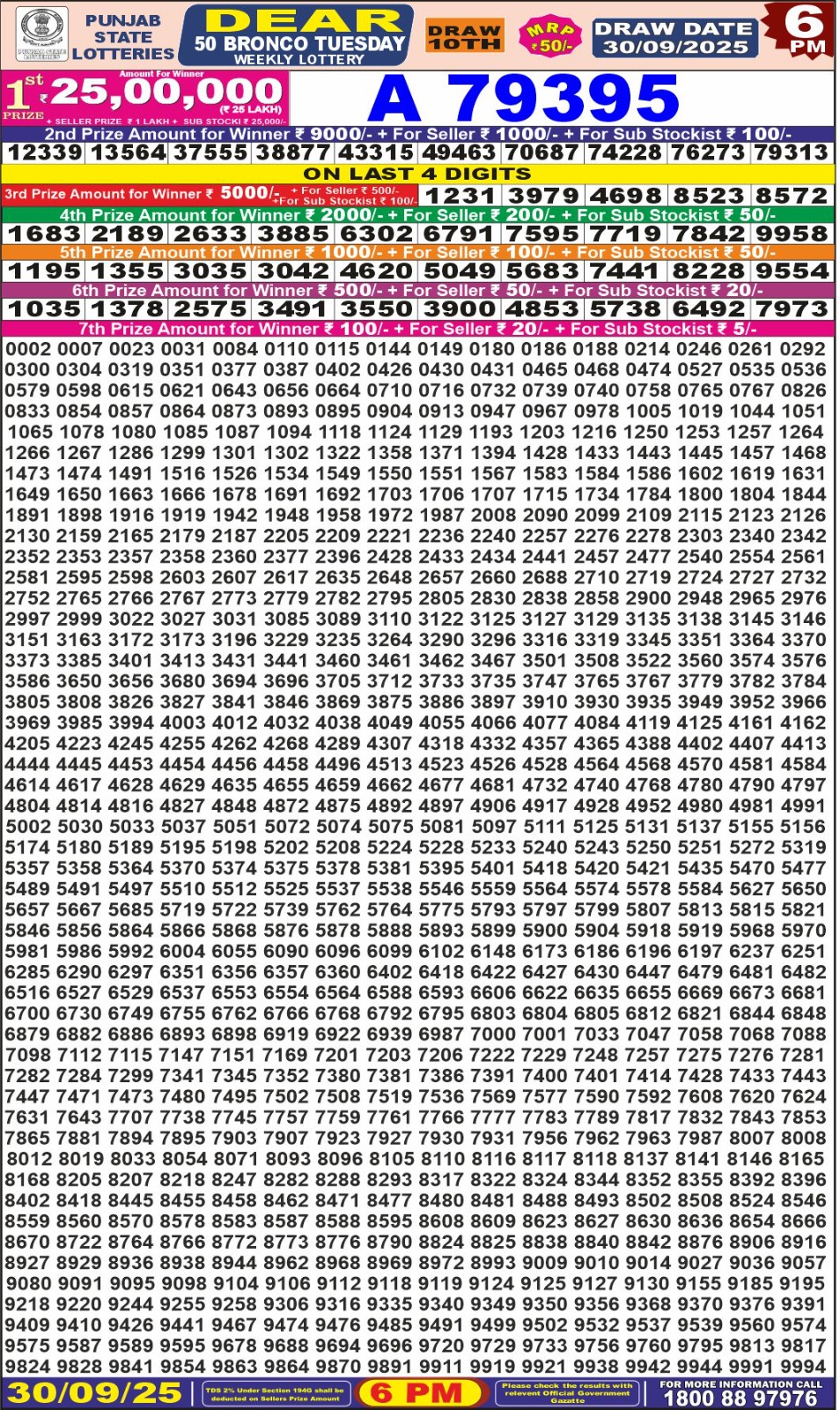 Dear Monthly Chart Punjab State Dear 50 6PM Lottery Result 30.09.25 September 30, 2025 Leave a Comment on Dear Monthly Chart Punjab State Dear 50 6PM Lottery Result 30.09.25 Share: XFacebookPinterestRedditVKDiggLinkedinMix