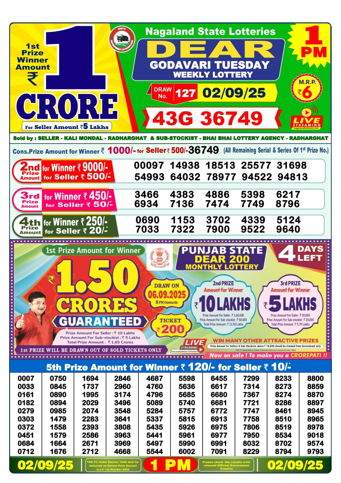 Nagaland State Lottery Result Today 1PM 02.09.25 September 2, 2025 Leave a Comment on Nagaland State Lottery Result Today 1PM 02.09.25 Share: XFacebookPinterestRedditVKDiggLinkedinMix