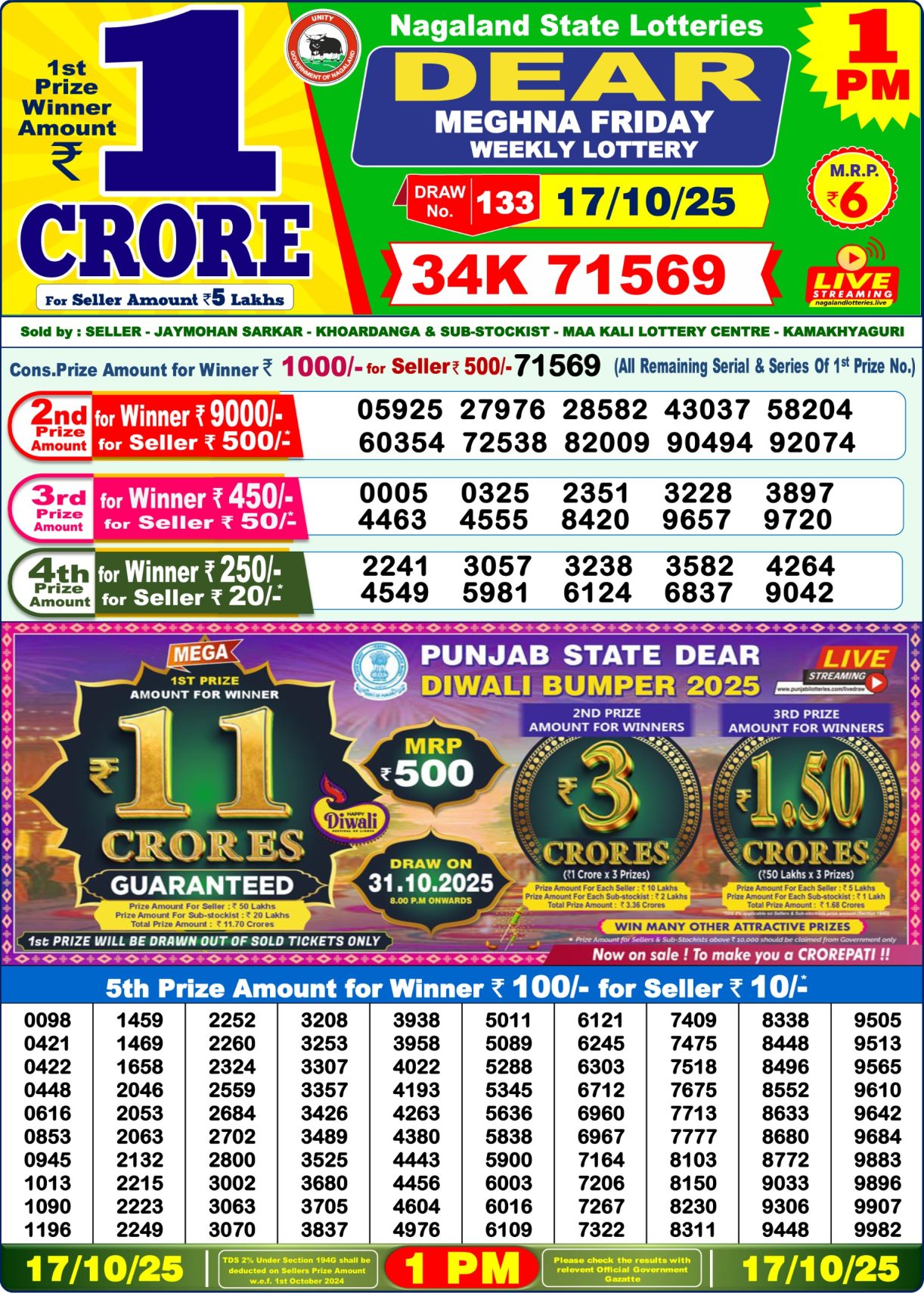 Nagaland State Lottery Result Today 1PM 17.10.25 October 17, 2025 Leave a Comment on Nagaland State Lottery Result Today 1PM 17.10.25 Share: XFacebookPinterestRedditVKDiggLinkedinMix