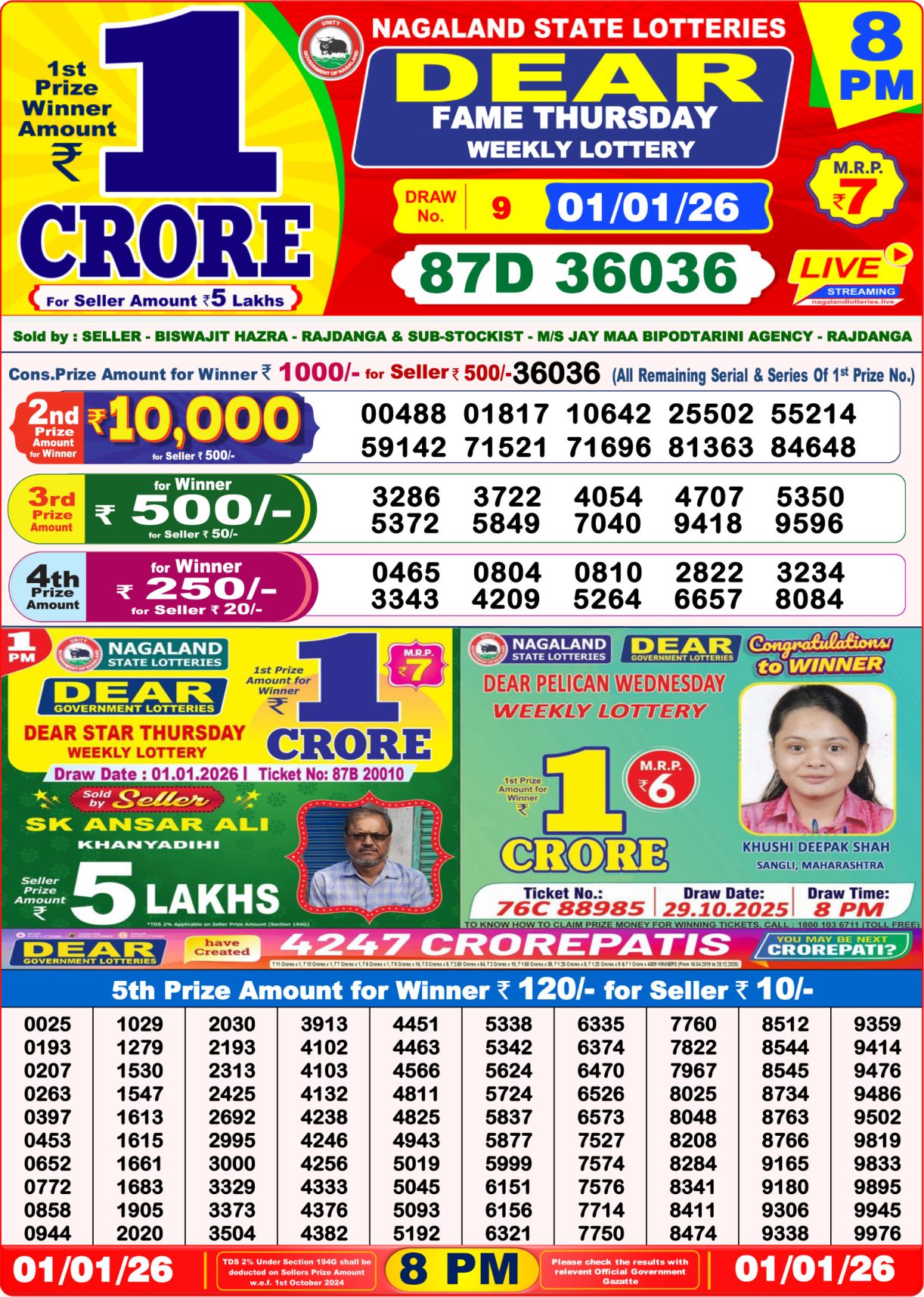Nagaland State Lottery Result Today 8PM 01.01.26 January 1, 2026 Leave a Comment on Nagaland State Lottery Result Today 8PM 01.01.26 Share: XFacebookPinterestRedditVKDiggLinkedinMix