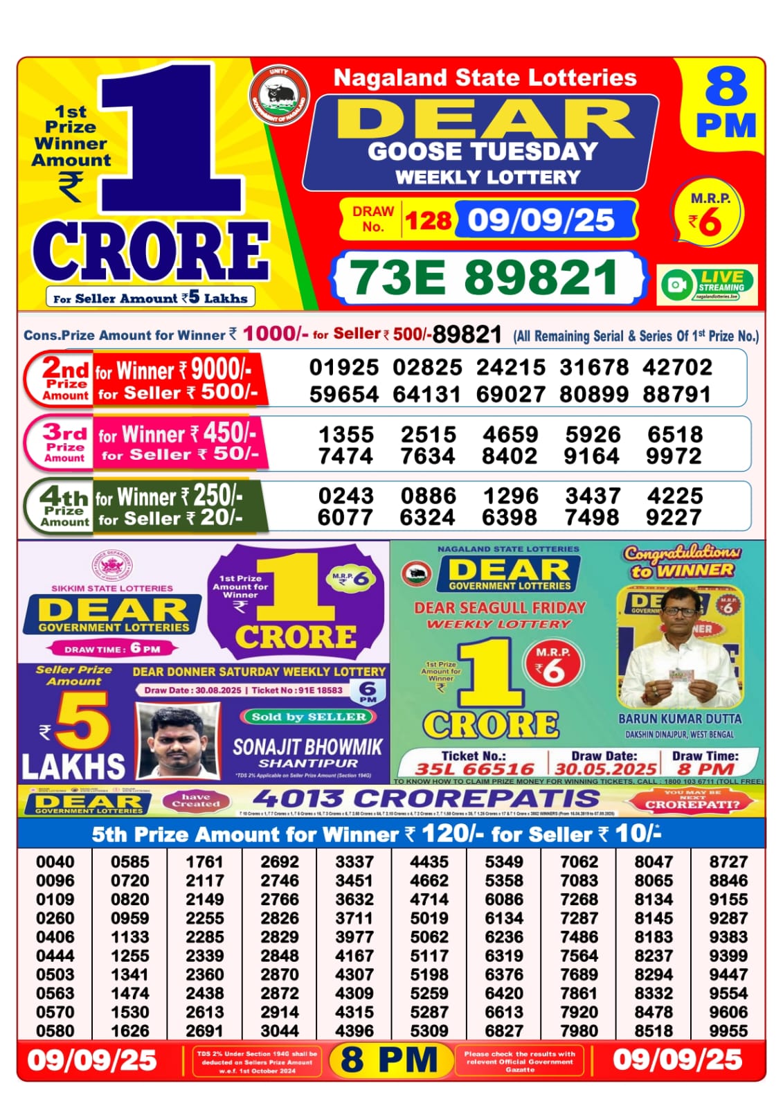Nagaland State Lottery Result Today 8PM 09.09.25