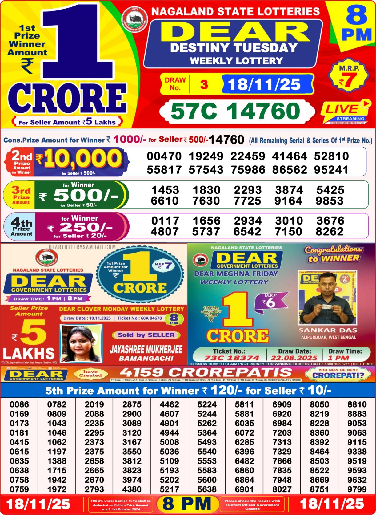 Nagaland State Lottery Result Today 8PM 18.11.25 November 18, 2025 Leave a Comment on Nagaland State Lottery Result Today 8PM 18.11.25 Share: XFacebookPinterestRedditVKDiggLinkedinMix