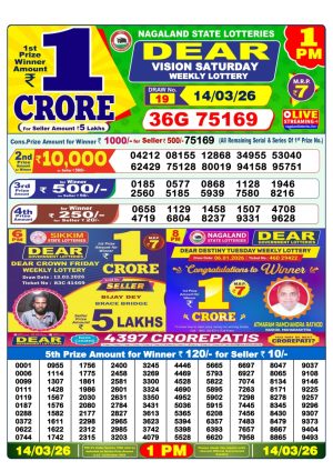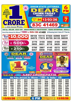 Dear Lottery Chart 6PM Result Sikkim State 14.03.26
