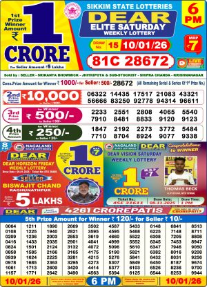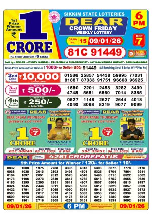 Dear Lottery Monthly Chart 6PM Result Sikkim State 15.01.26