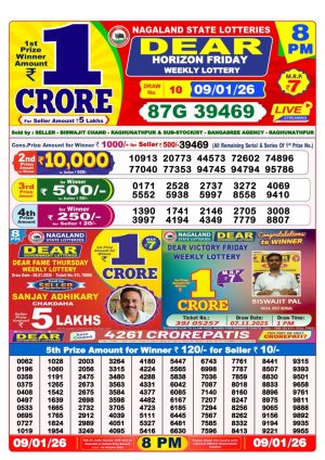 Nagaland State Lottery Result Today 8PM 10.01.26