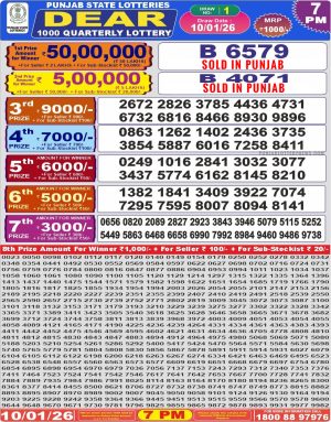 Dear Monthly Chart Punjab State Dear 1000 Quarterly 7PM Lottery Result 10.01.26