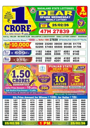 Nagaland Monthly Chart 1PM Result Today 25.02.26