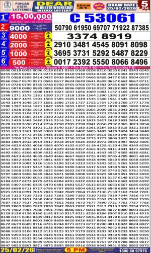 Dear Monthly Chart Punjab State Dear 50 5PM Lottery Result 25.02.26