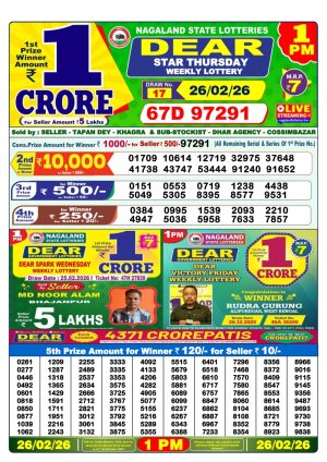 Nagaland Monthly Chart 1PM Result Today 26.02.26
