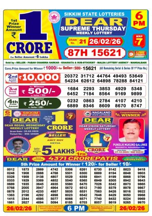 Dear Lottery Chart 6PM Result Sikkim State 26.02.26