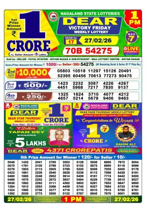 Nagaland Monthly Chart 1PM Result Today 27.02.26
