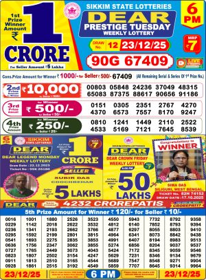 Dear Lottery Monthly Chart 6PM Result Sikkim State 23.12.25