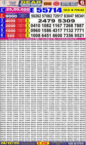Dear Monthly Chart Punjab State Dear 50 6PM Lottery Result 24.12.25