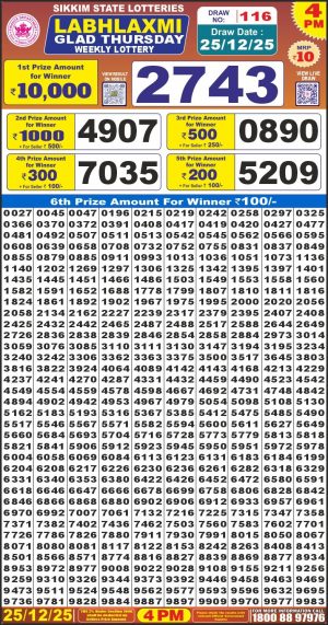 Dear Lottery Monthly Chart 6PM Result Sikkim State 25.12.25