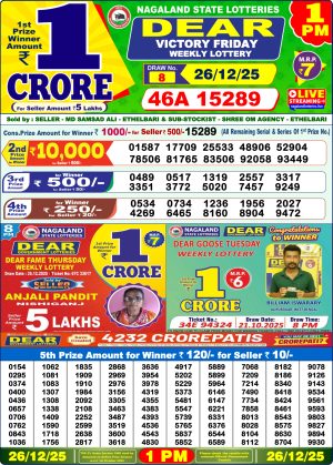 Nagaland State Lottery Result Today 1PM 26.12.25