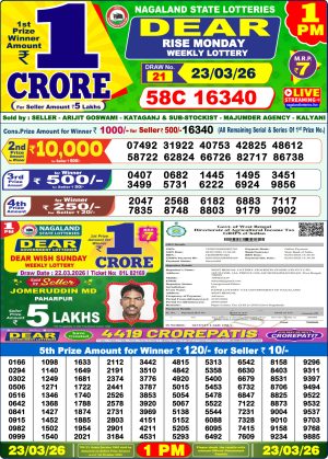 Nagaland Monthly Chart 1PM Result Today 23.03.26