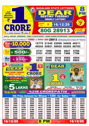 Nagaland State Lottery Result Today 8PM 16.12.25