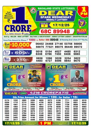 Nagaland State Lottery Result Today 1PM 17.12.25