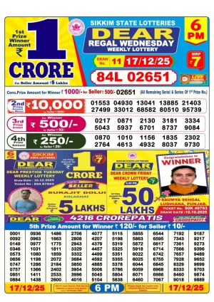 Dear Lottery Monthly Chart 6PM Result Sikkim State 17.12.25