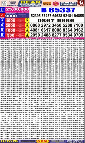 Dear Monthly Chart Punjab State Dear 50 6PM Lottery Result 17.12.25