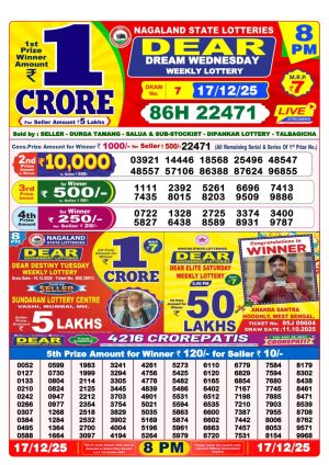 Nagaland State Lottery Result Today 8PM 17.12.25