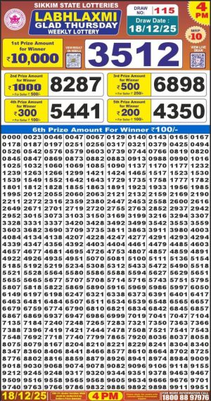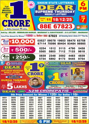 Dear Lottery Monthly Chart 6PM Result Sikkim State 18.12.25