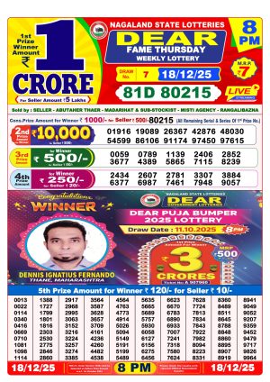 Nagaland State Lottery Result Today 8PM 18.12.25