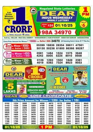 Nagaland State Lottery Result Today 1PM 01.10.25