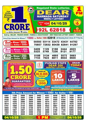 Nagaland State Lottery Result Today 1PM 04.10.25