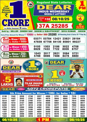 Nagaland State Lottery Result Today 1PM 08.10.25