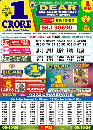 Nagaland State Lottery Result Today 1PM 09.10.25
