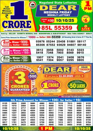 Nagaland State Lottery Result Today 1PM 10.10.25
