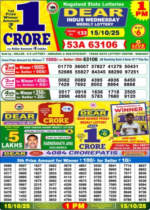 Nagaland State Lottery Result Today 1PM 15.10.25