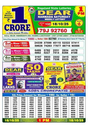 Nagaland State Lottery Result Today 1PM 18.10.25
