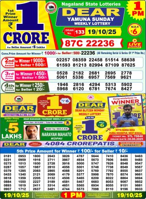 Nagaland State Lottery Result Today 1PM 19.10.25