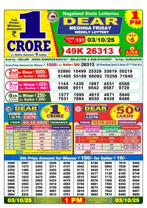 Nagaland State Lottery Result Today 1PM 03.10.25