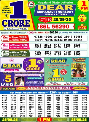 Nagaland State Lottery Result Today 1PM 25.09.25